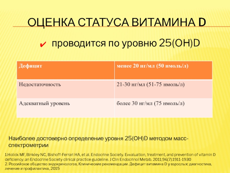 2. Российское общество эндокринологов, Клинические рекомендации. Дефицит витамина D у взрослых: диагностика, лечение и профилактика, 2015