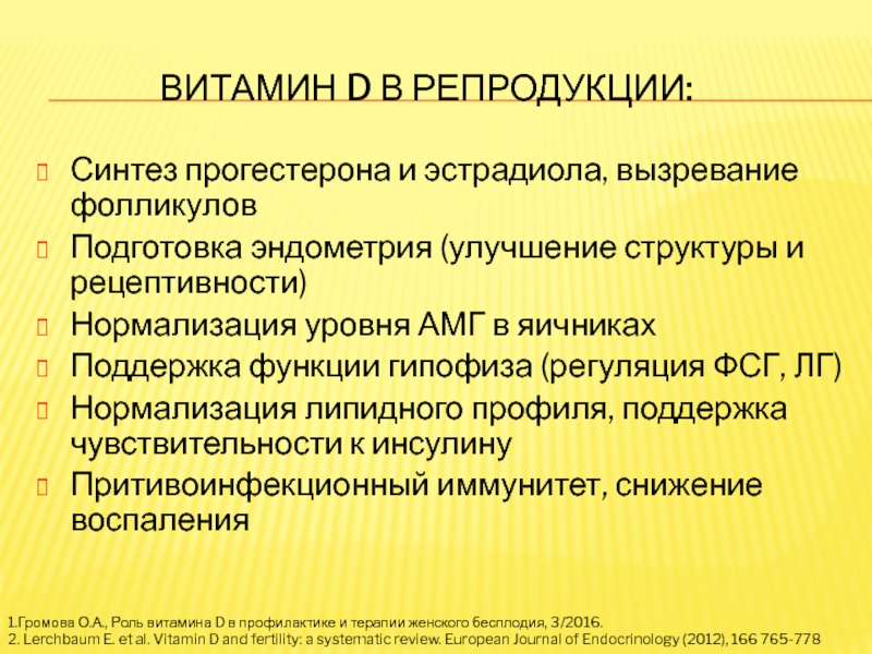 2. Lerchbaum E. et al. Vitamin D and fertility: a systematic review. European Journal of Endocrinology (2012), 166 765-778