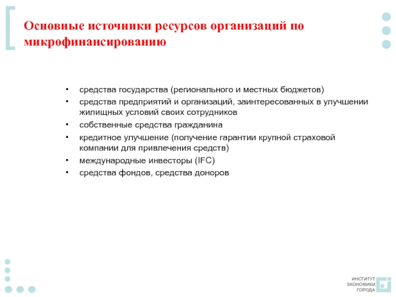 Слайд 6Основные источники ресурсов организаций по микрофинансированию