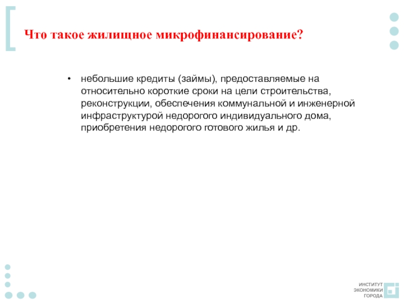 Слайд 2Что такое жилищное микрофинансирование?