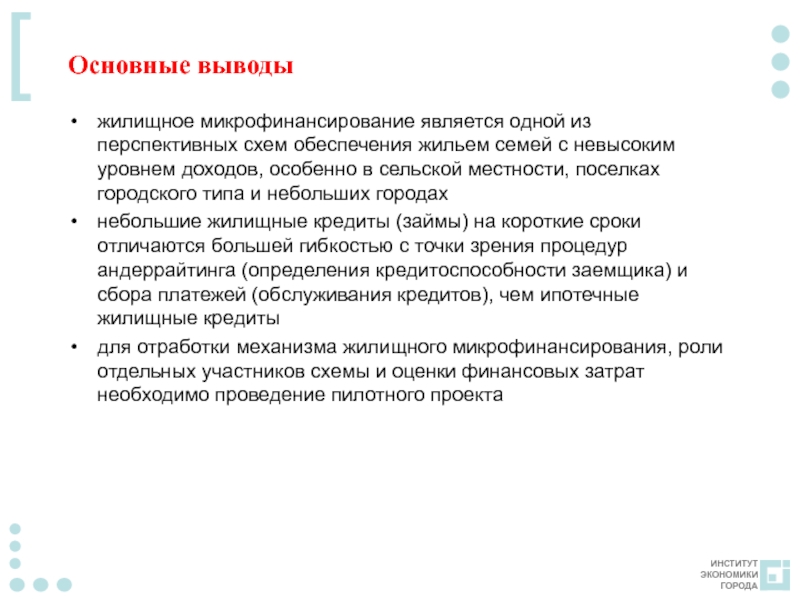 жилищное микрофинансирование является одной из перспективных схем обеспечения жильем семей