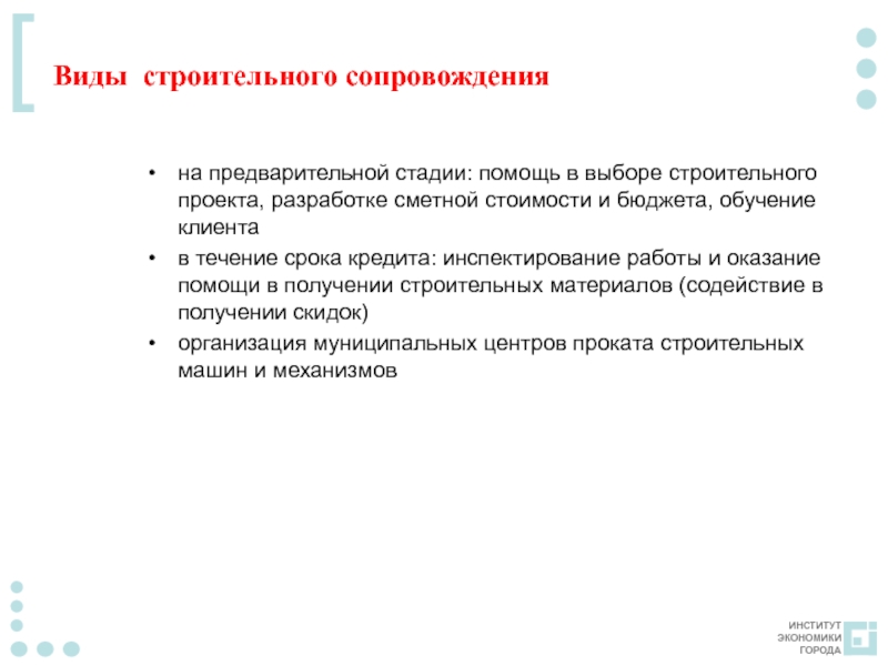 Слайд 20Виды строительного сопровождения