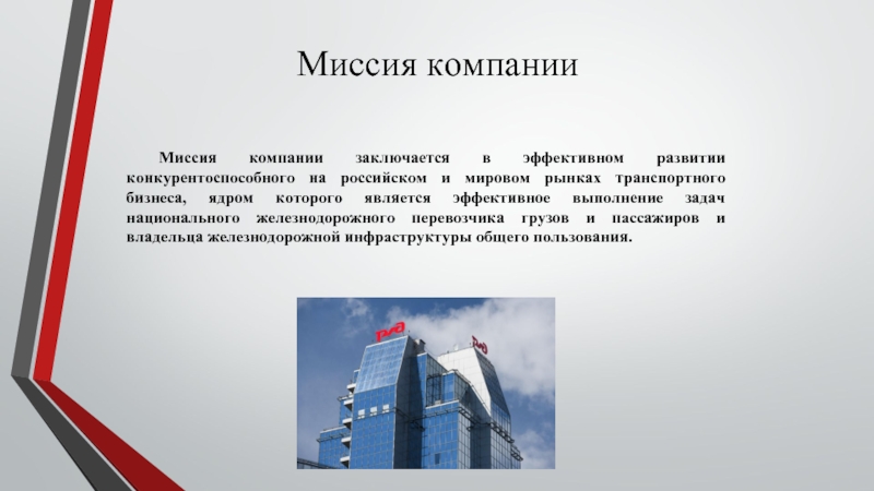 Миссия компании заключается в эффективном развитии конкурентоспособного на российском и