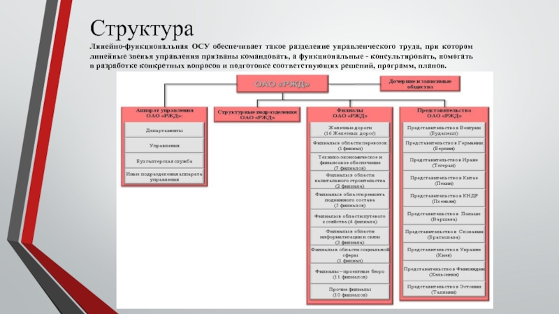 Линейно-функциональная ОСУ обеспечивает такое разделение управленческого труда, при котором линейные звенья