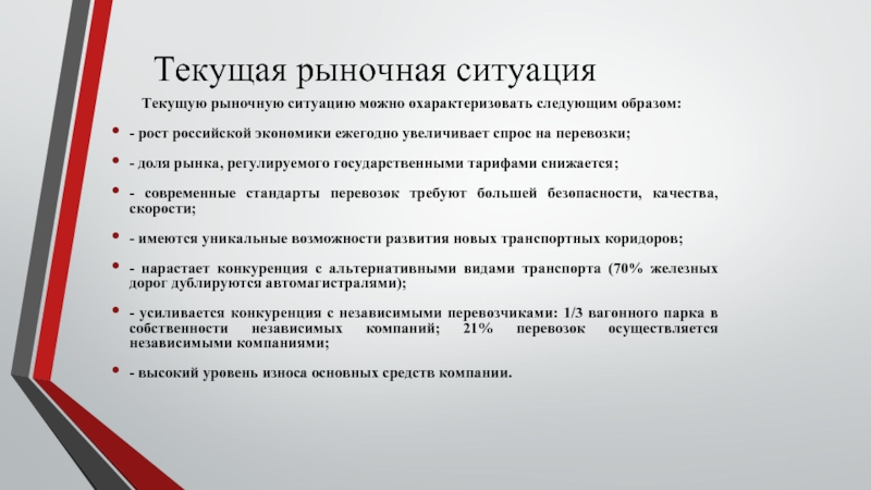 Текущую рыночную ситуацию можно охарактеризовать следующим образом: