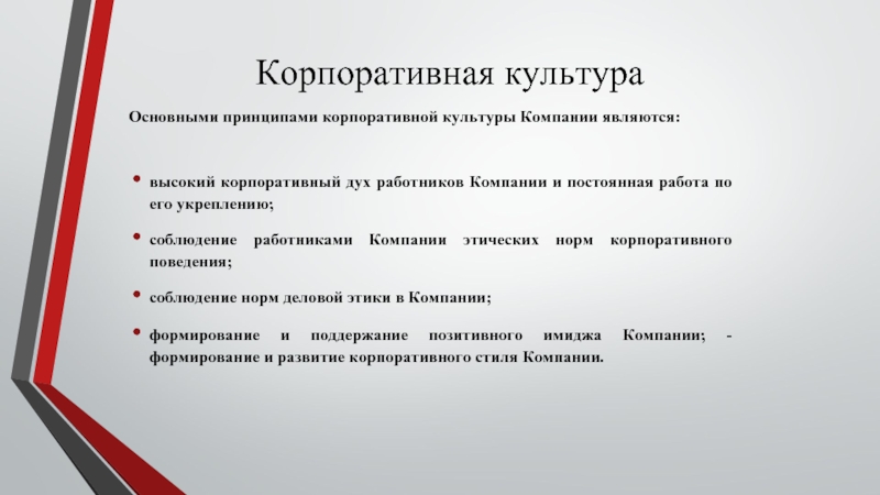Слайд 12 Корпоративная культура - это постановка и ведение дела на предприятии, комплекс