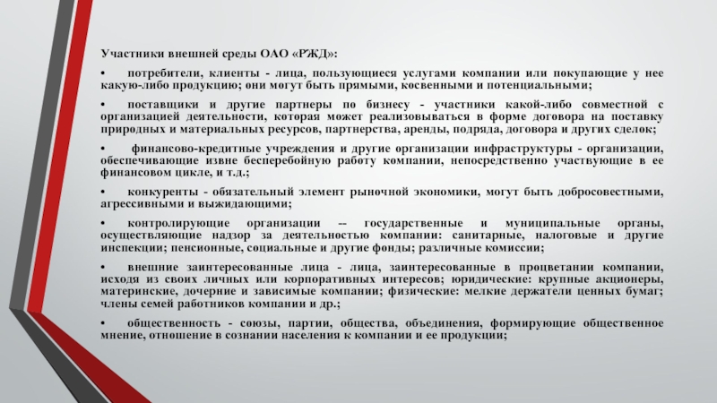 Слайд 18Участники внешней среды ОАО «РЖД»: