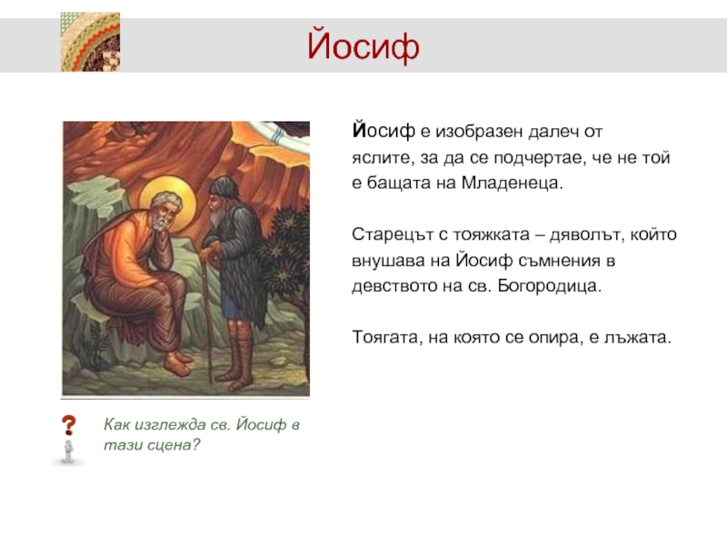 Как изглежда св. Йосиф в тази сцена?