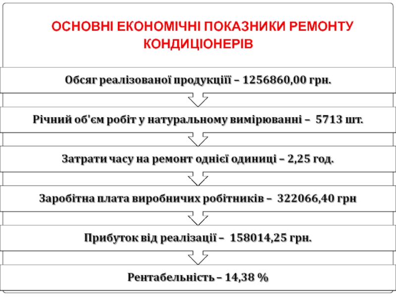 Слайд 7 ОСНОВНІ ЕКОНОМІЧНІ ПОКАЗНИКИ РЕМОНТУ КОНДИЦІОНЕРІВ