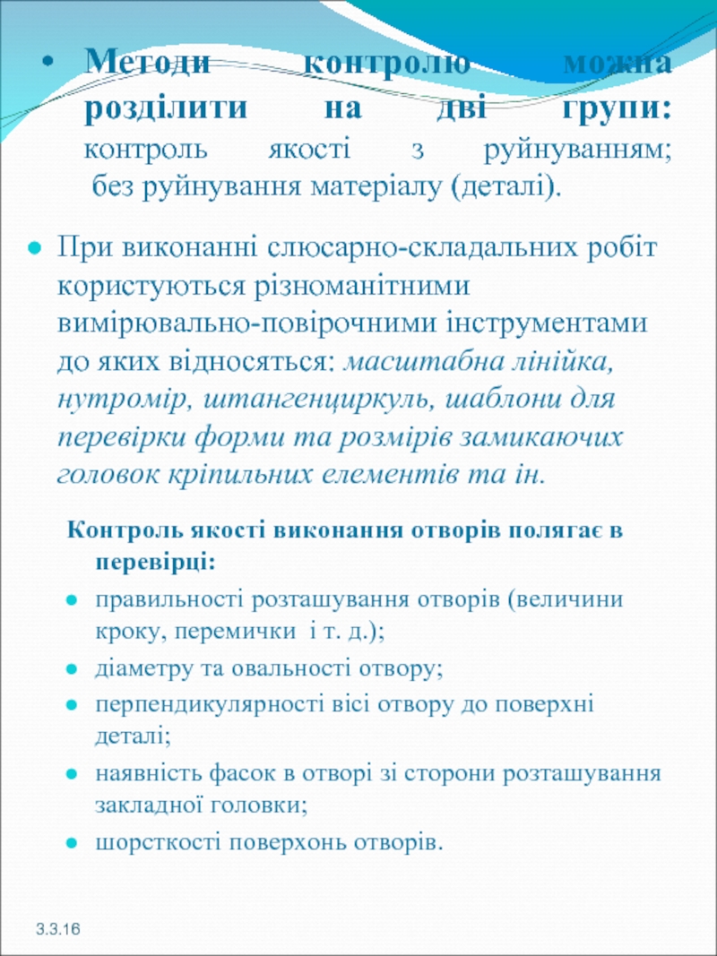 правильності розташування отворів (величини кроку, перемички і т. д.);