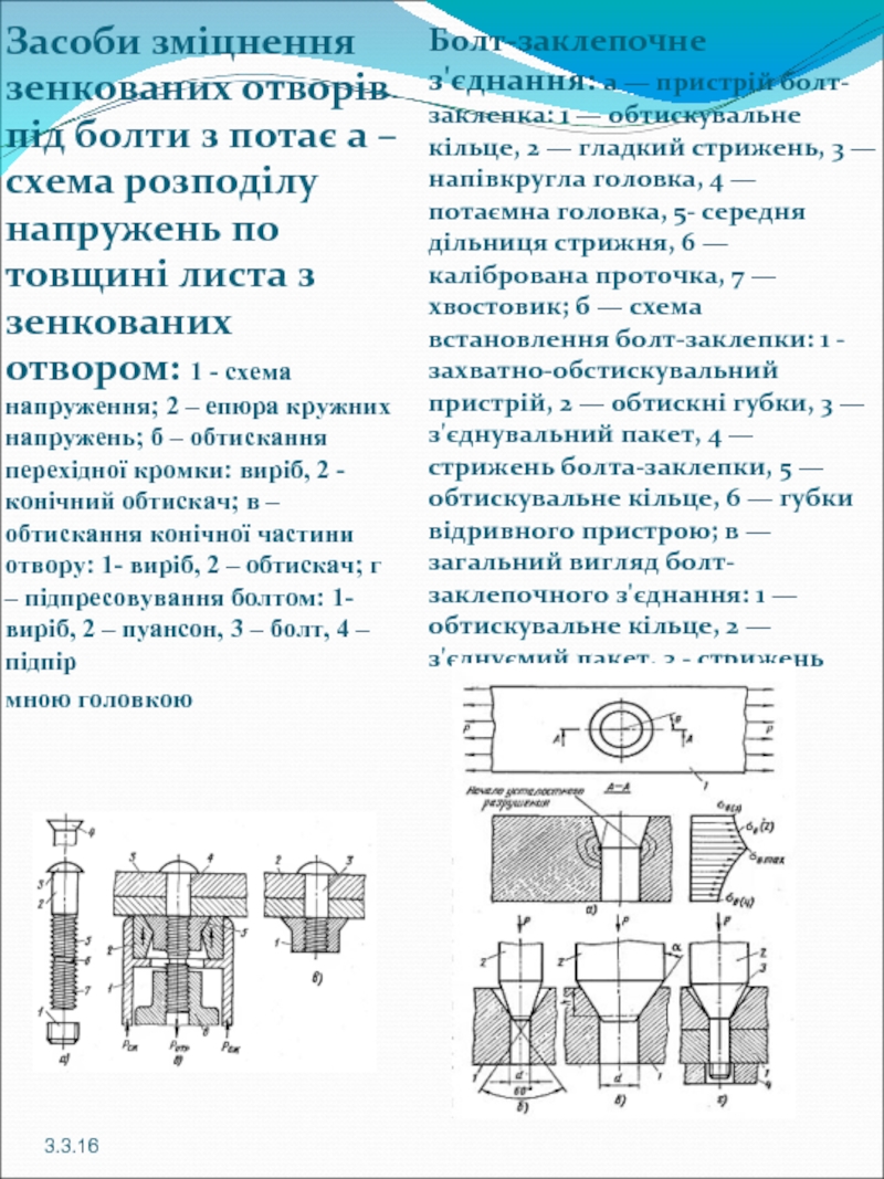 стан поверхонь закладних і замикаючих головок болт-заклепок.