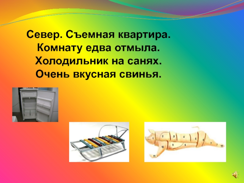 Слайд 8Север. Съемная квартира. Комнату едва отмыла. Холодильник на санях. Очень вкусная свинья.