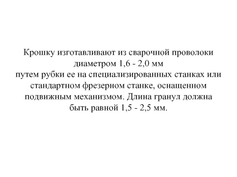 Слайд 32Крошку изготавливают из сварочной проволоки диаметром 1,6 - 2,0 мм