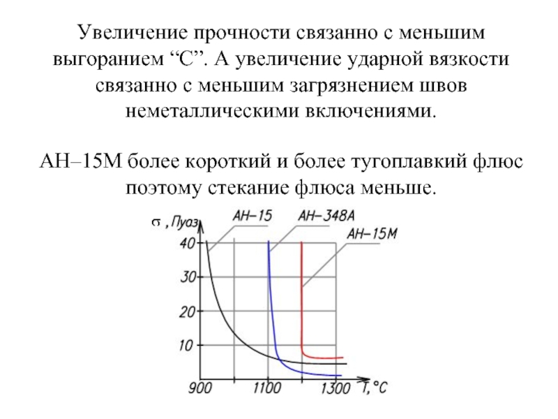 АН–15М более короткий и более тугоплавкий флюс поэтому стекание флюса меньше.