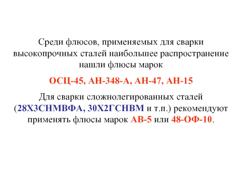 Слайд 15Среди флюсов, применяемых для сварки высокопрочных сталей наибольшее распространение нашли флюсы