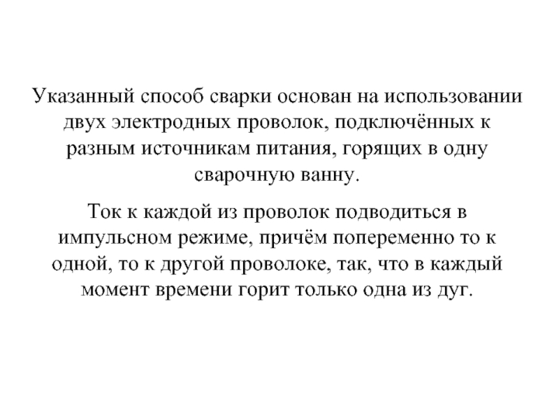 Слайд 55Указанный способ сварки основан на использовании двух электродных проволок, подключённых к