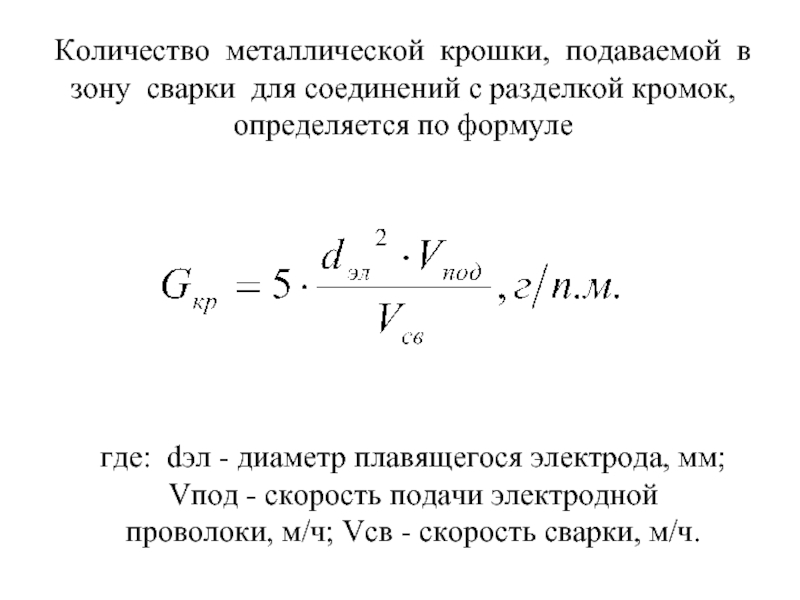 Слайд 35Количество металлической крошки, подаваемой в зону сварки для соединений с разделкой