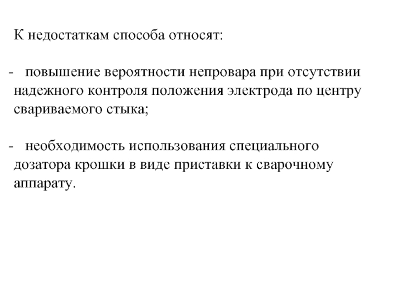Слайд 31К недостаткам способа относят: