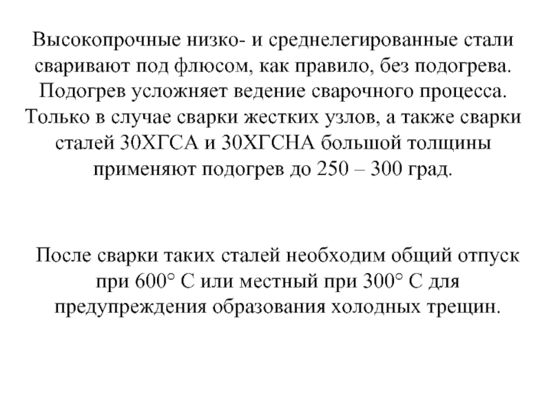 Слайд 18Высокопрочные низко- и среднелегированные стали сваривают под флюсом, как правило, без