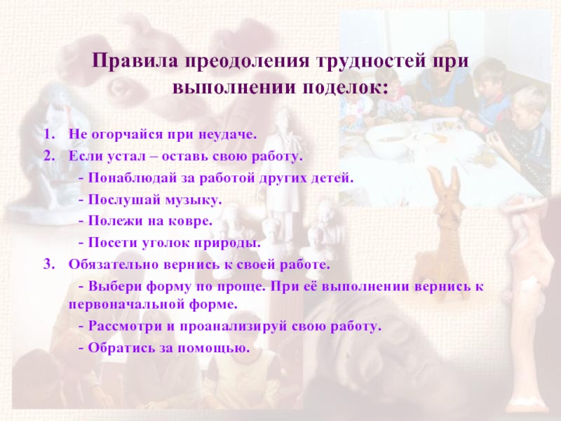 Слайд 26Правила преодоления трудностей при выполнении поделок:
