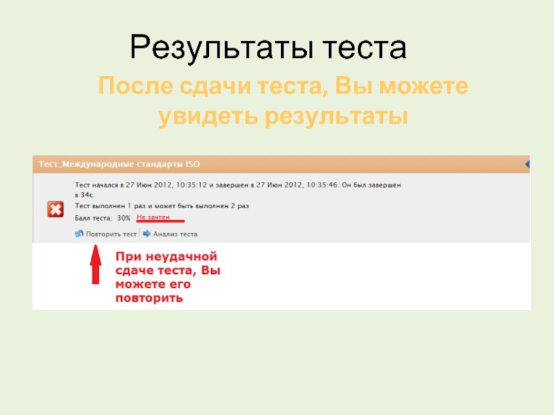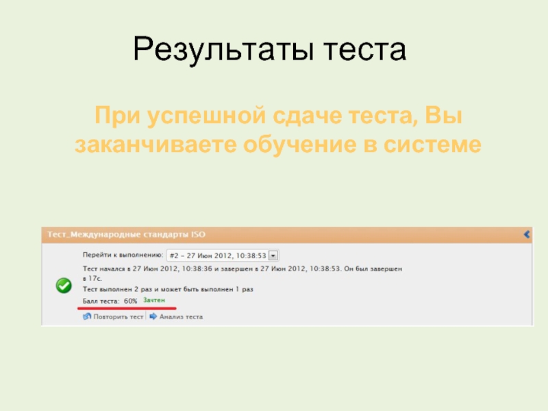 При успешной сдаче теста, Вы заканчиваете обучение в системе