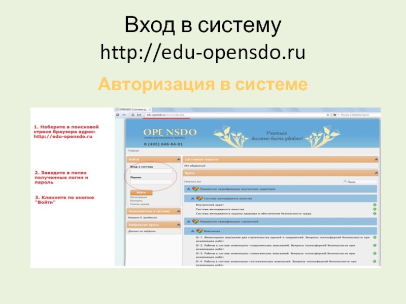 Слайд 2Вход в систему http://edu-opensdo.ru