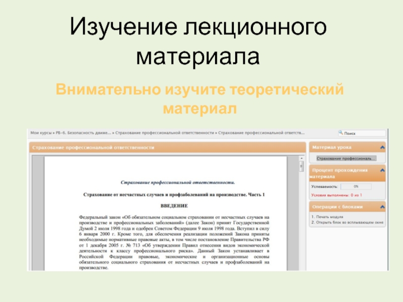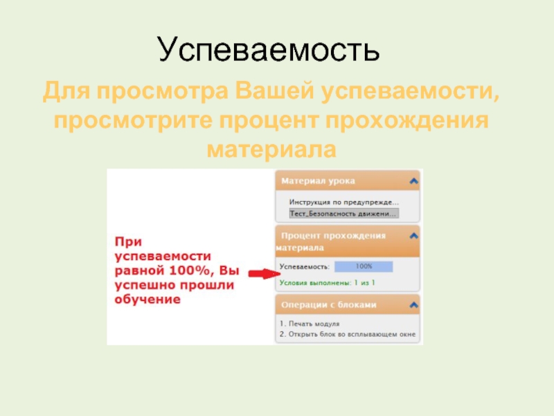 Для просмотра Вашей успеваемости, просмотрите процент прохождения материала