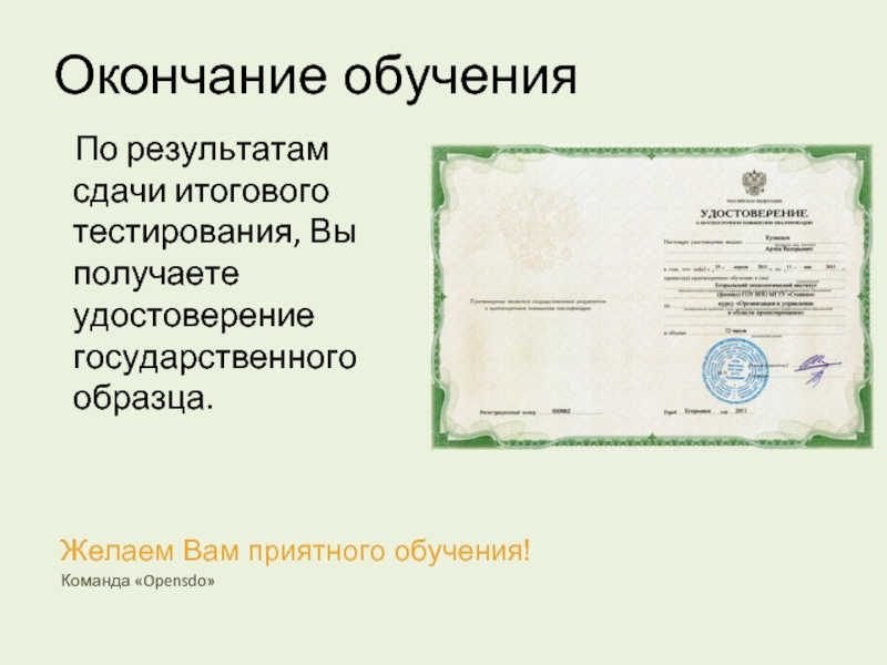 По результатам сдачи итогового тестирования, Вы получаете удостоверение государственного образца.