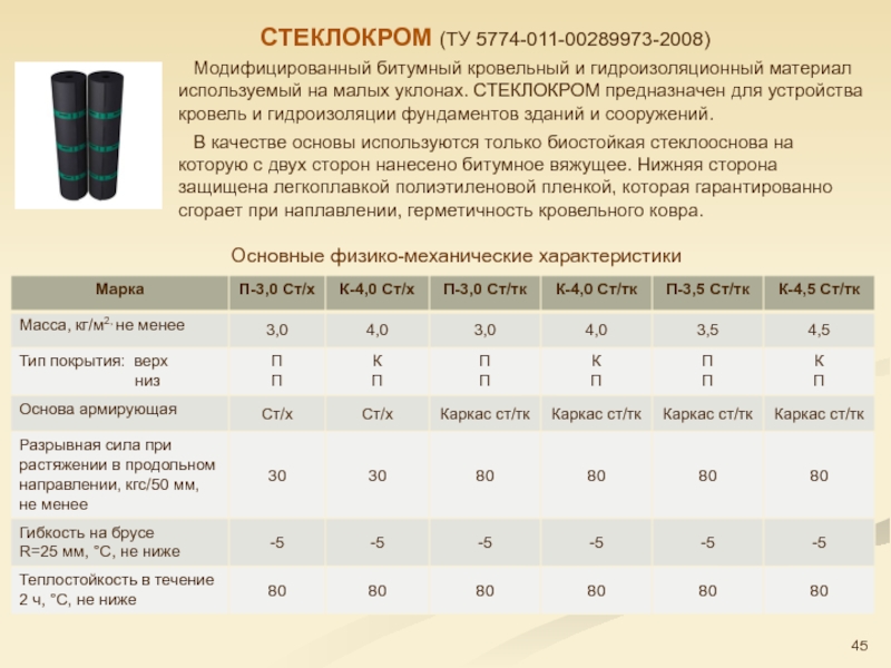 уклонах. СТЕКЛОКРОМ предназначен для устройства кровель и гидроизоляции фундаментов зданий и сооружений.