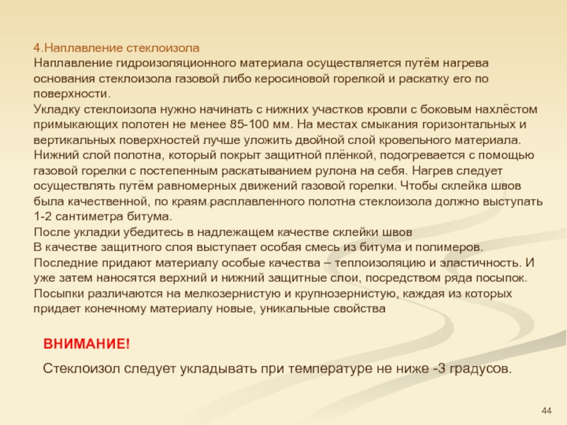 Стеклоизол следует укладывать при температуре не ниже -3 градусов.