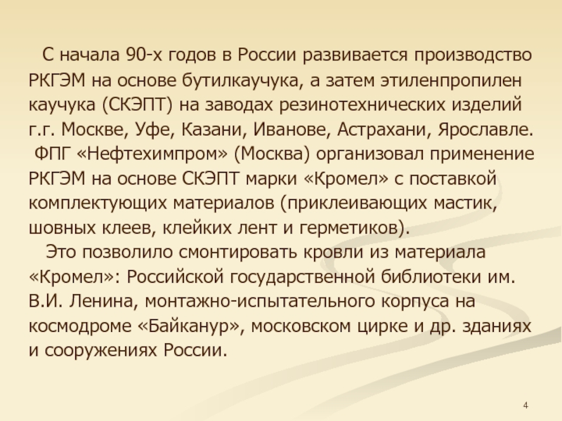 Слайд 4 С начала 90-х годов в России развивается производство РКГЭМ на
