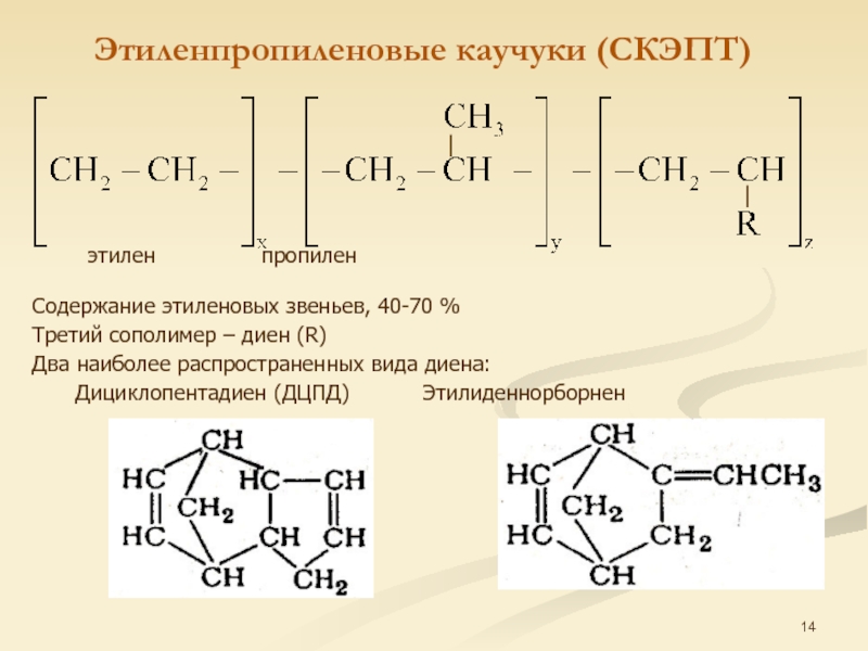 Слайд 14Этиленпропиленовые каучуки (СКЭПТ)