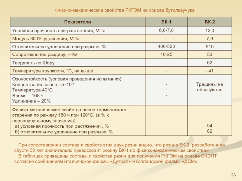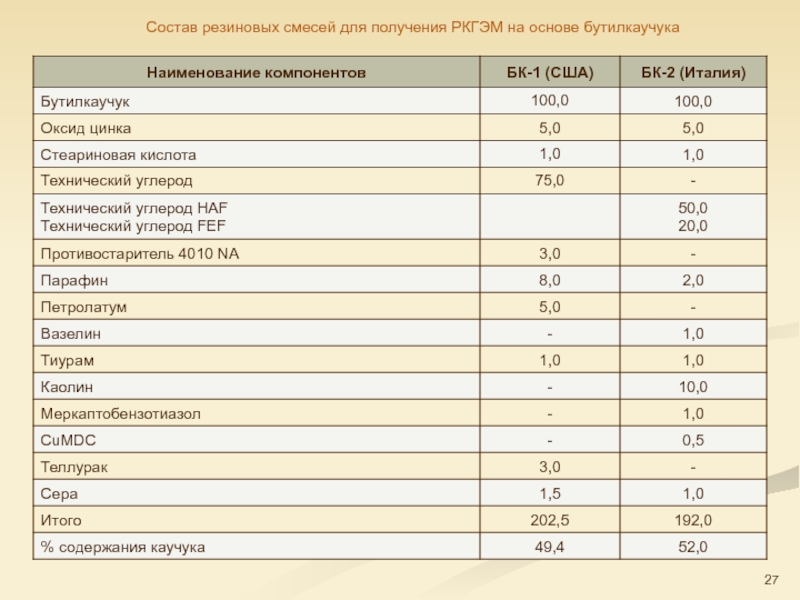 РКГЭМ из бутилкаучука, когда требуется достижение максимальной долговечности, применяются марки с минимальным содержанием двойных связей.
