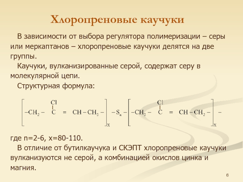 Слайд 6 В зависимости от выбора регулятора полимеризации – серы или