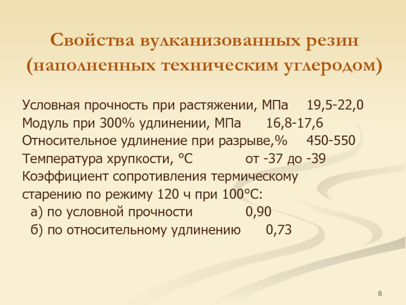 Слайд 8Условная прочность при растяжении, МПа 19,5-22,0