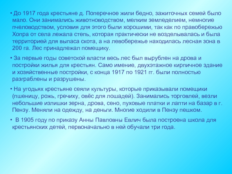 Слайд 5 До 1917 года крестьяне д. Поперечное жили бедно, зажиточных семей