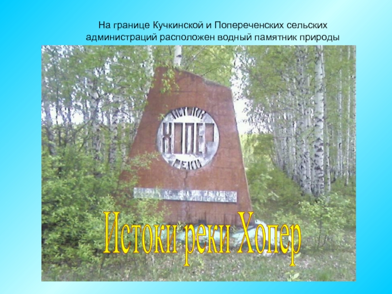 Слайд 13На границе Кучкинской и Попереченских сельских администраций расположен водный памятник природы