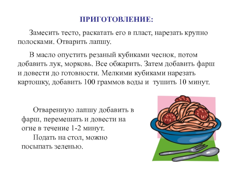 Отваренную лапшу добавить в фарш, перемешать и довести на огне в течение 1-2 минут.
