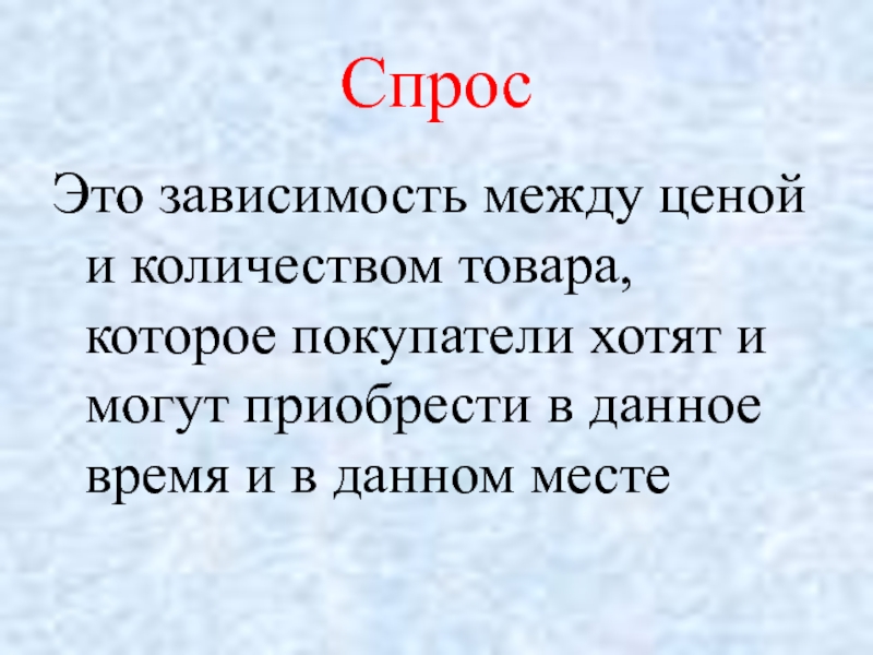которое покупатели хотят (желание потребителя) и могут (зависит от цены товара) приобрести по данной цене в течение определенного времени.