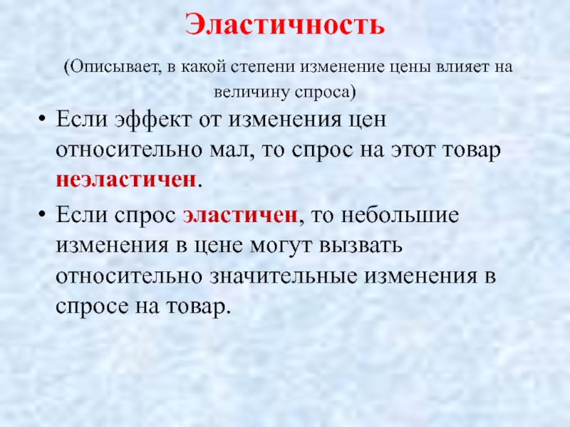 эффект от изменения цен относительно мал, то спрос на этот товар неэластичен.