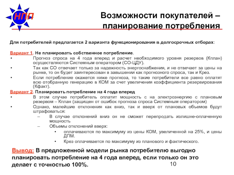 Повышение прозрачности механизмов выбора состава ген. оборудования