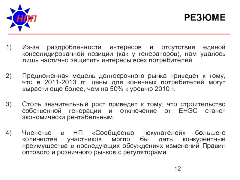 Из-за раздробленности интересов и отсутствия единой консолидированной позиции (как у генераторов), нам удалось лишь частично защитить интересы всех потребителей.