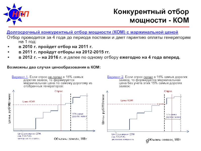 Вариант 1. Если спрос не попал в 15% самых дорогих заявок, то формируется маржинальная цена по самому дорогому из отобранных генераторов: