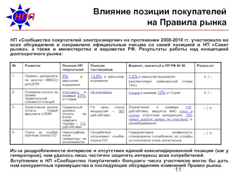 Вступление в НП «Сообщество покупателей» большего числа участников могло бы дать нам конкурентные преимущества в последующих обсуждениях изменений Правил рынка.