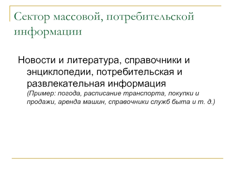 Слайд 7Сектор массовой, потребительской информации
