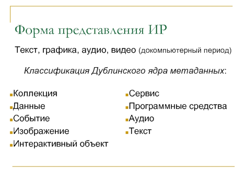 Слайд 11Форма представления ИР