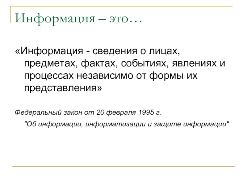 «Информация - сведения о лицах, предметах, фактах, событиях, явлениях