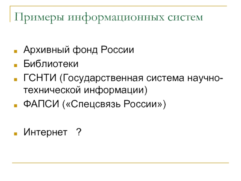 Слайд 10Примеры информационных систем