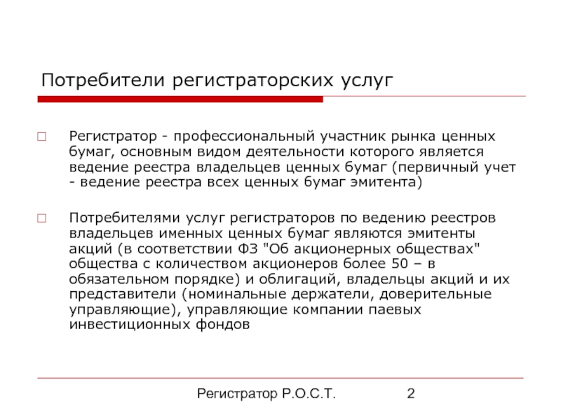 Слайд 1Рынок регистраторских услуг
