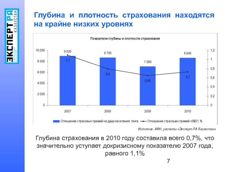 Глубина страхования в 2010 году составила всего 0,7%, что значительно уступает докризисному показателю 2007 года, равного 1,1%